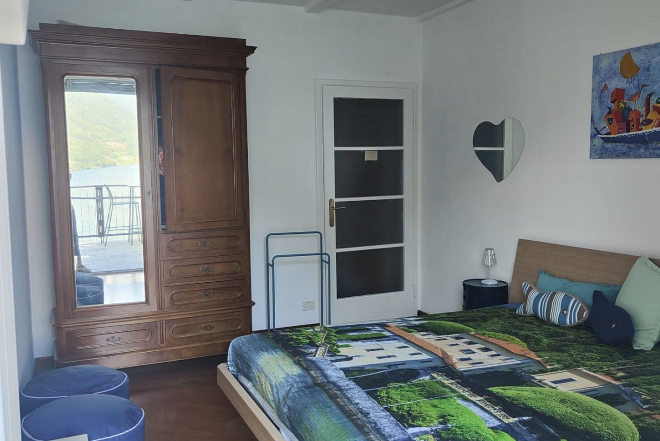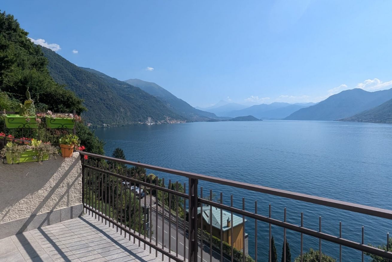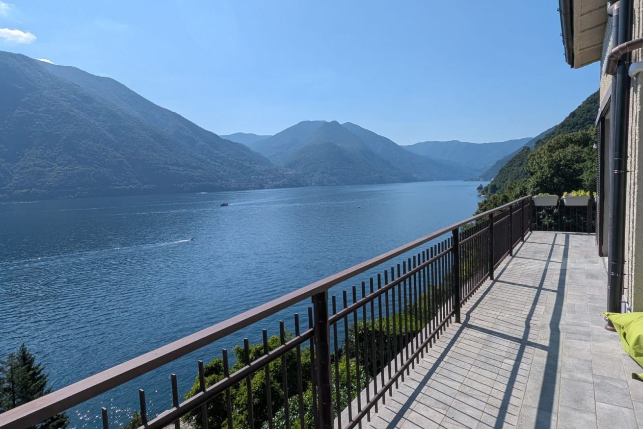 Il vero cuore della casa è il grande terrazzo privato. Qui potrete sorseggiare un caffè al mattino o un calice di vino al tramonto, circondati da un piccolo angolo di verde curato, con una vista mozzafiato che spazia dal blu del lago alle vette circostanti.